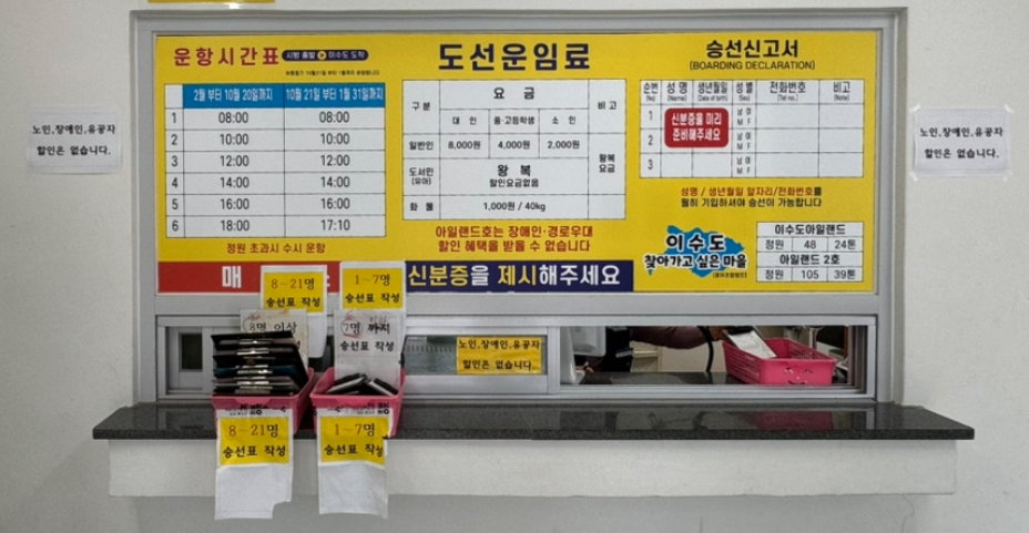 - 배편: 하루 5~6회, 왕복 5~7분 소요
