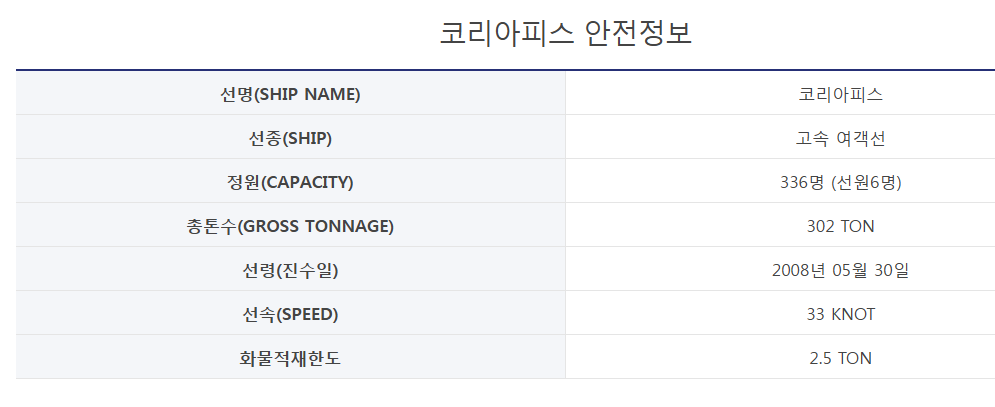 1) 코리아피스호: 고려고속훼리에서 운영하는 쾌속선으로, 빠른 이동이 가능합니다.