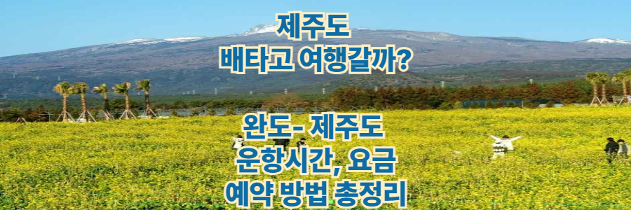 제주도는 사계절이 모두 매력적인 한국의 대표 여행지입니다. 특히 자기 차량을 이용하는 여행객의 경우는 배를 타고 제주도를 많이 가는데요, 완도 제주도 배편 시간 및 승객, 차량 각각의 운항 요금, 그리고 예약 방법에 대해서 상세히 안내드리겠습니다.