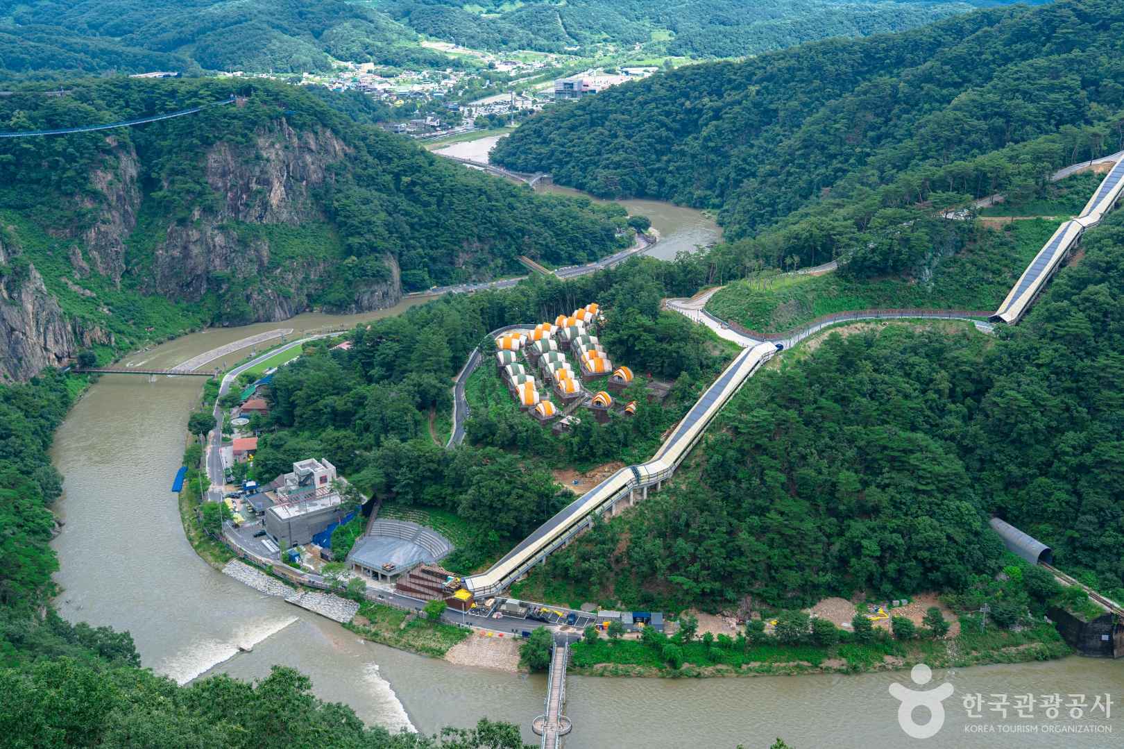 울렁다리는 출렁다리보다 더 긴 404m의 거리로 조성된 또 다른 보행 전용 다리입니다. 이름처럼 건널 때마다 울렁이는 느낌을 주며, 다리 위에서 보는 풍경은 마치 공중에 떠 있는 듯한 인상을 줍니다. 출렁다리보다 더 스릴 있는 코스를 원하신다면 꼭 한번 도전해 보세요.