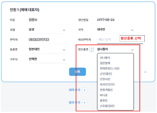 KSA 화면(예매하기) - 할인 종류를 선택합니다